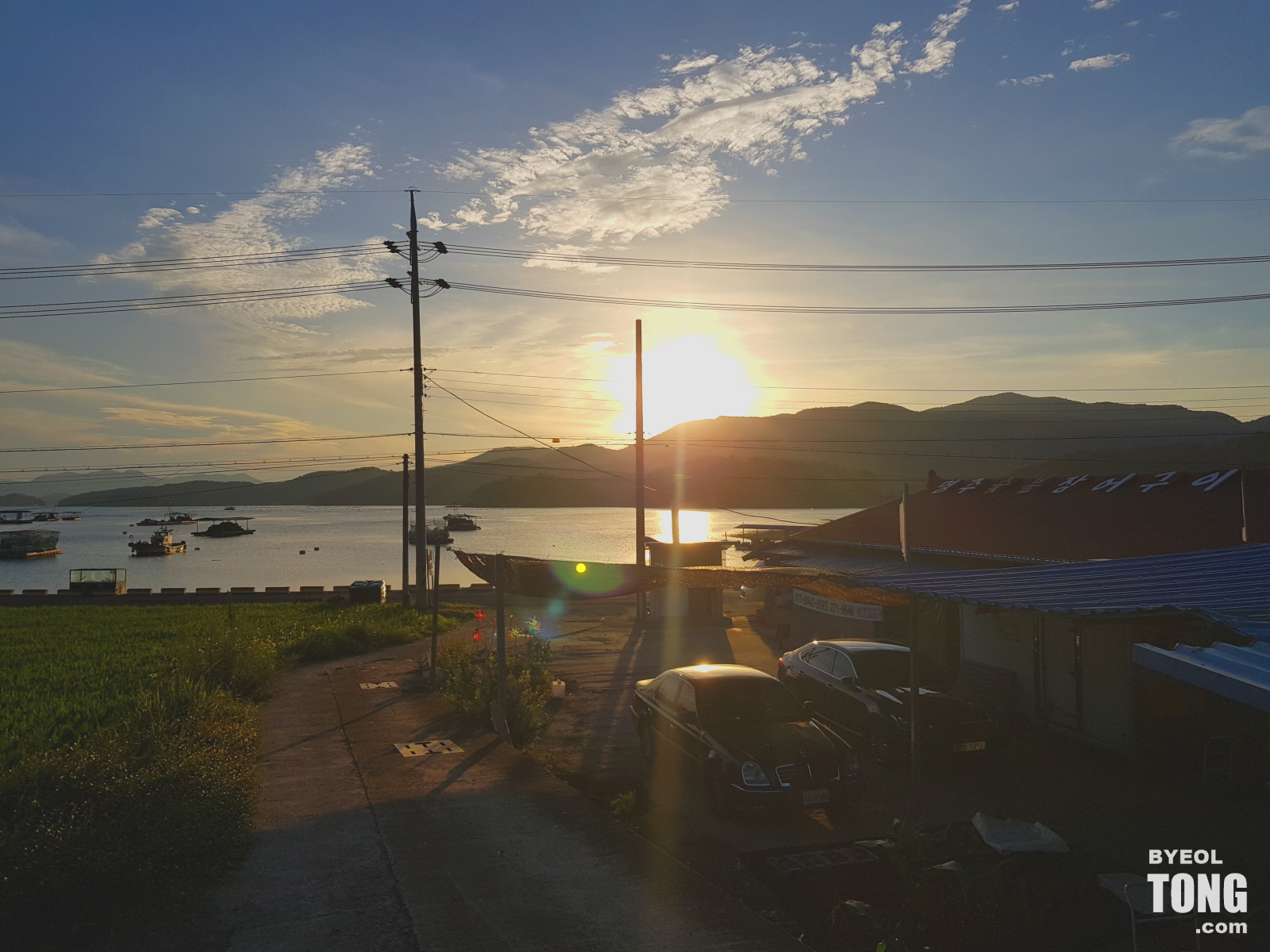 식당에 도착하니 마침 해가 지고 있어서 사진으로 한 장 담아보고 배를 채우기 위해 식당 안으로 들어갑니다.