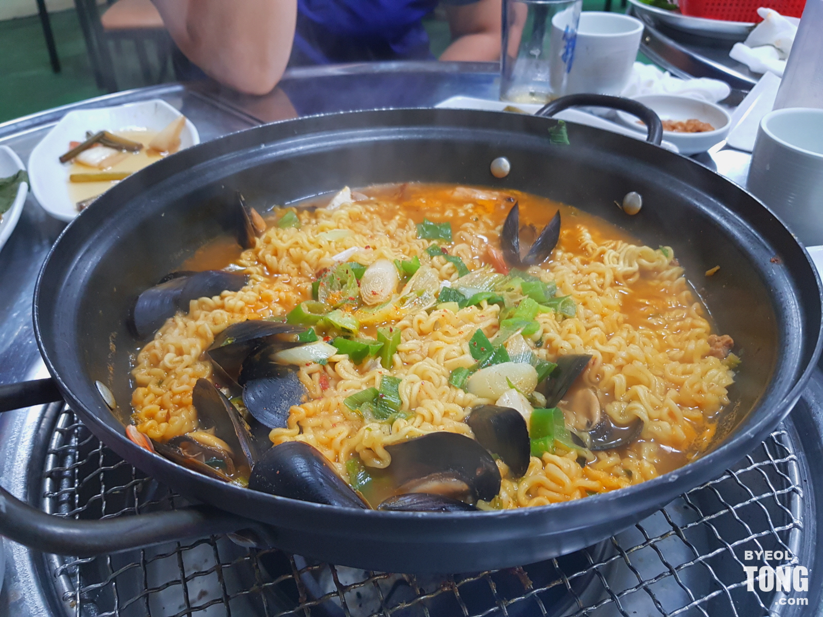 마지막으로 해물라면까지 맛있게 먹었습니다. 너무 많이 먹어서 밥은 못시키겠고, 뭔가 아쉬워서 시켰는데 맛있어서 계속 젓가락이 가더군요. 사실, 따로 맛집을 검색하지 않고 지나가다가 눈에 띄어 찾은 곳인데 생각보다 맛있고, 양도 많아서 충분히 만족스러운 식사가 아니었나 싶습니다.