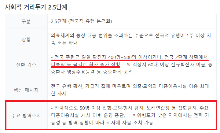 혹시라도 사회적 거리두기 단계가 2.5단계로 상향된다면 어떤 점이 바뀌는지 궁금해하실 것 같은데요. 그래서 오늘은 거리두기 2.5단계에는 어떻게 달라지는지 알아보는 시간을 가져볼까 합니다.