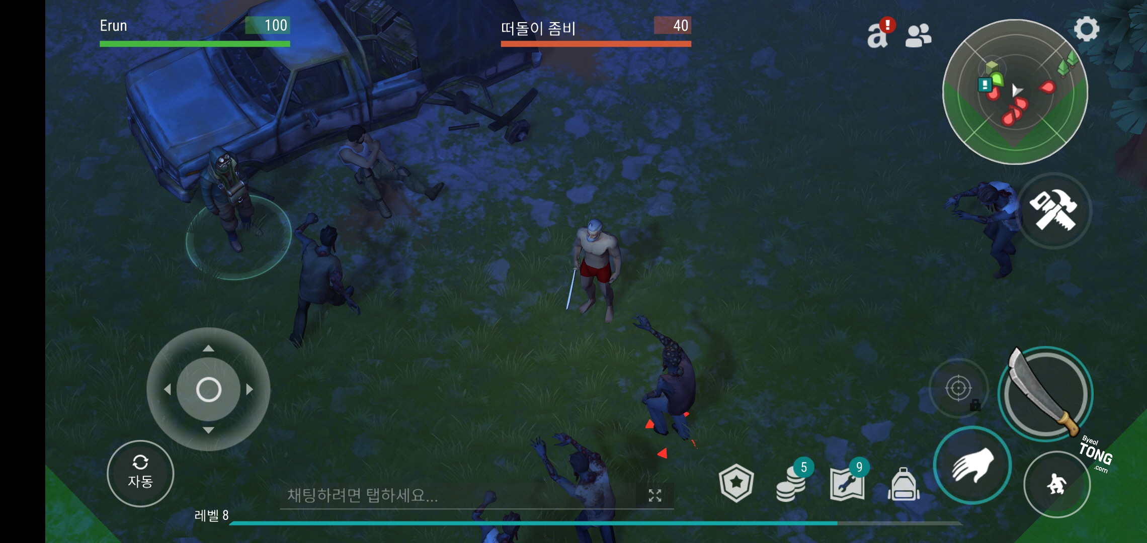 좀비를 만나면 가지고 있는 무기로 좀비와 맞서 싸워야하고,