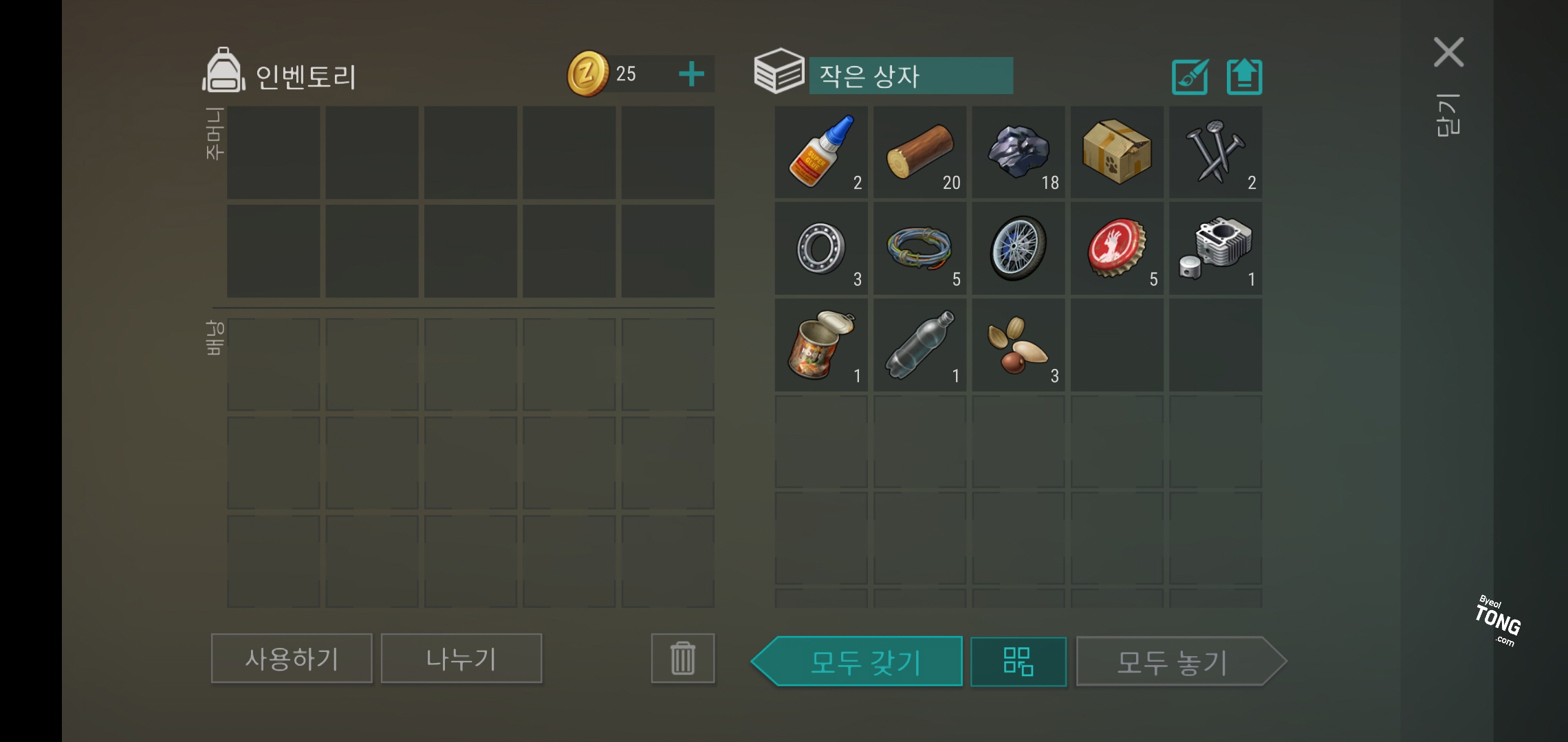 간단하게 설명하자면 맵을 돌아다니며 생존에 필요한 아이템을 수집하고, 나만의 쉘터에 수집한 아이템을 보관하고, 또 그것들로 아이템을 제작하면서 생존을 하는 게임입니다.