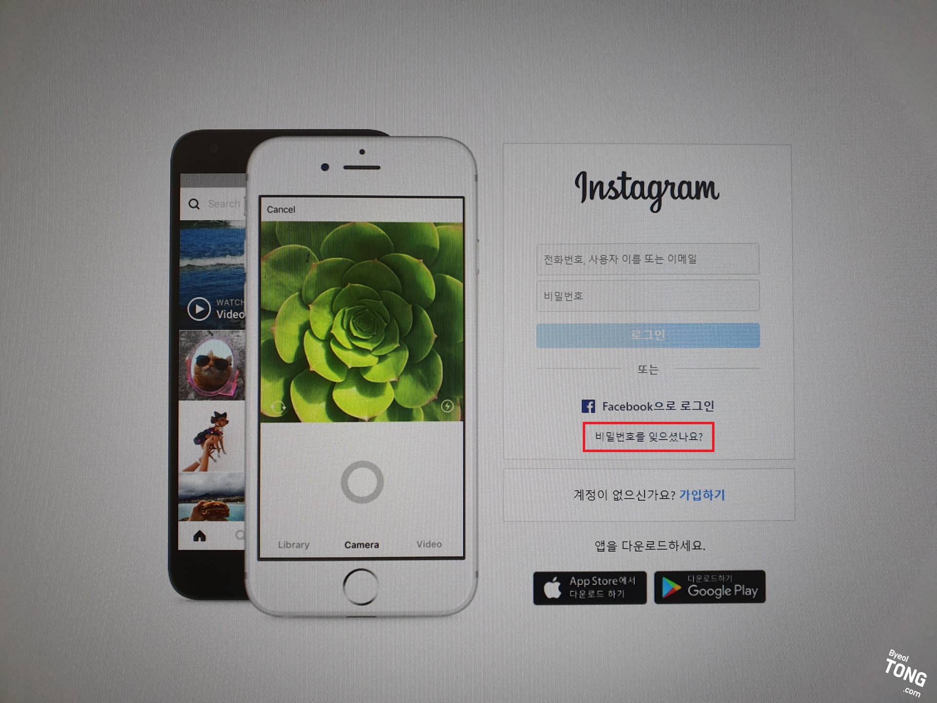 1. 일단 인스타그램 로그인 화면으로 접속합니다.