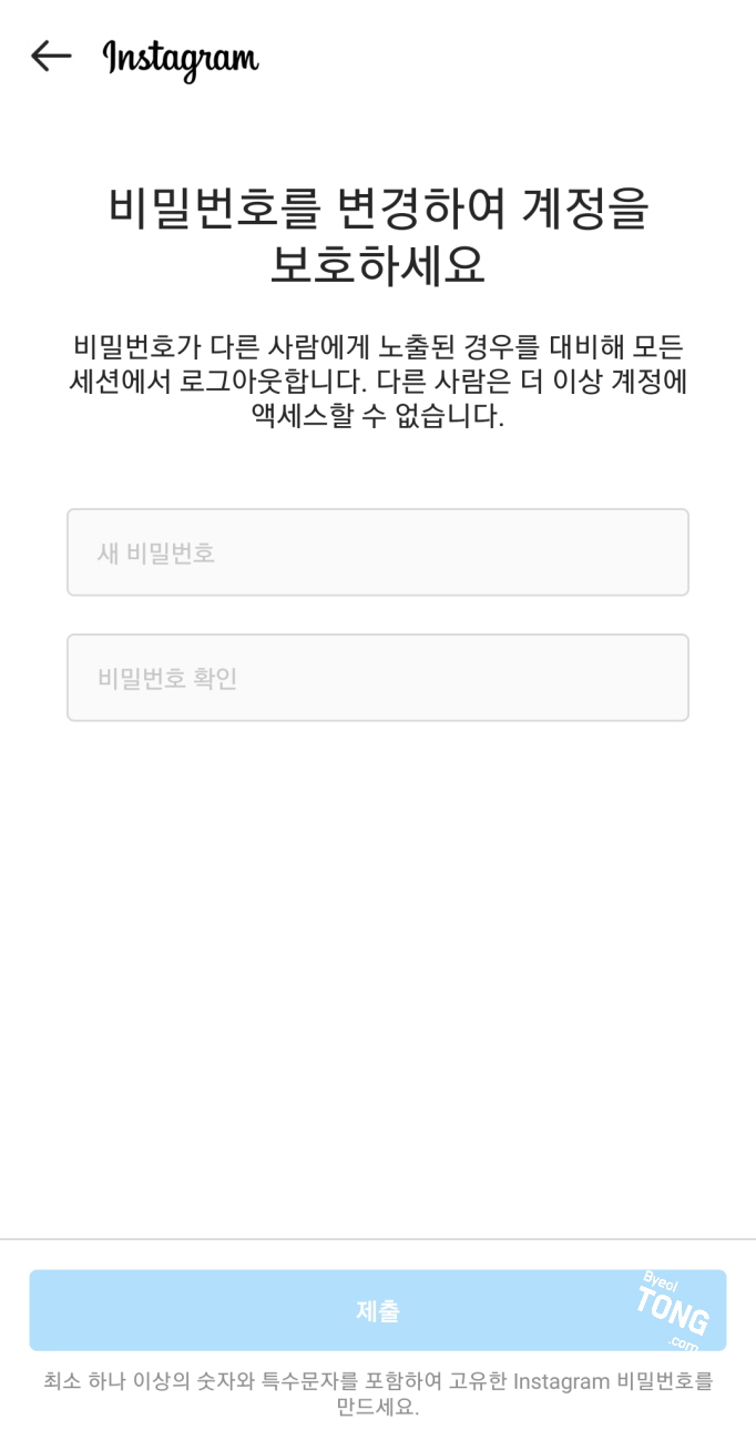기존의 비밀번호는 입력할 필요없이 변경할 새 비밀번호를 입력하면 됩니다.