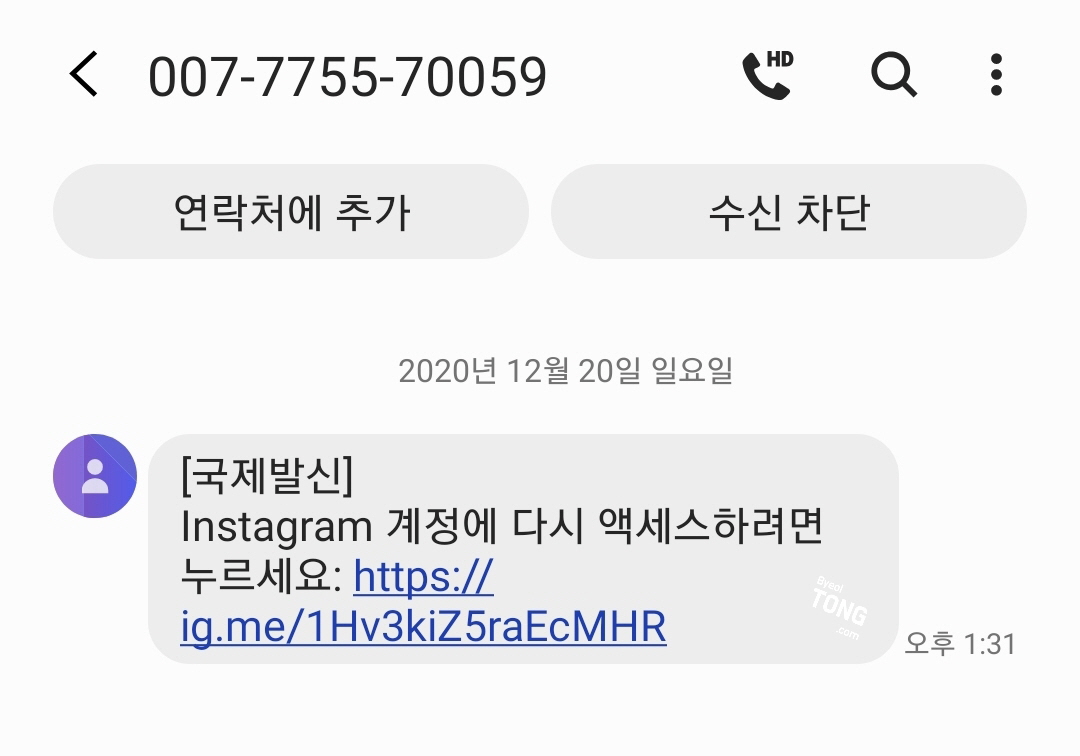 이상한 번호에 이상한 링크가 하나 보내졌지만,