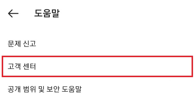 그리고 도움말 메뉴 중에서는 <고객 센터>를 찾아 눌러줍니다.