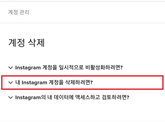 "내 인스타그램 계정을 삭제하려면?"을 누르면 다음과 같은 글이 펼쳐집니다.