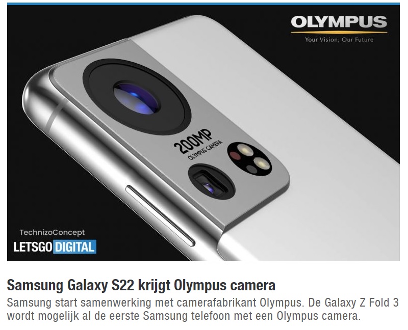 "삼성의 차세대 플래그십 스마트폰 갤럭시 S22가 2억 화소의 올림푸스 카메라를 탑재할 것"