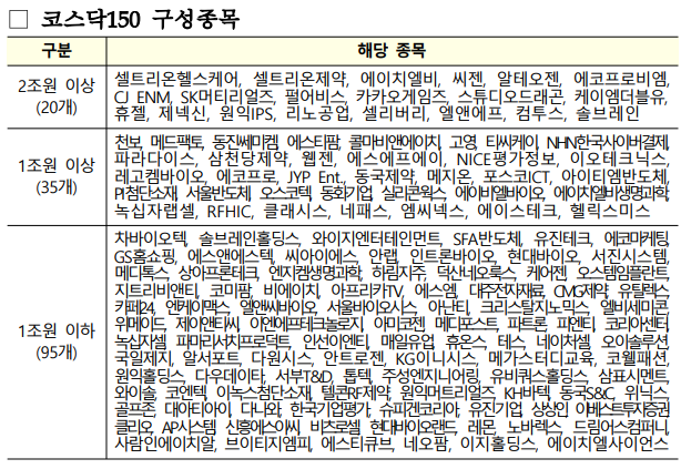 ◇코스닥150 : 전체 종목 수 (1,470개)의 10%, 전체 시총(392조원)의 50%