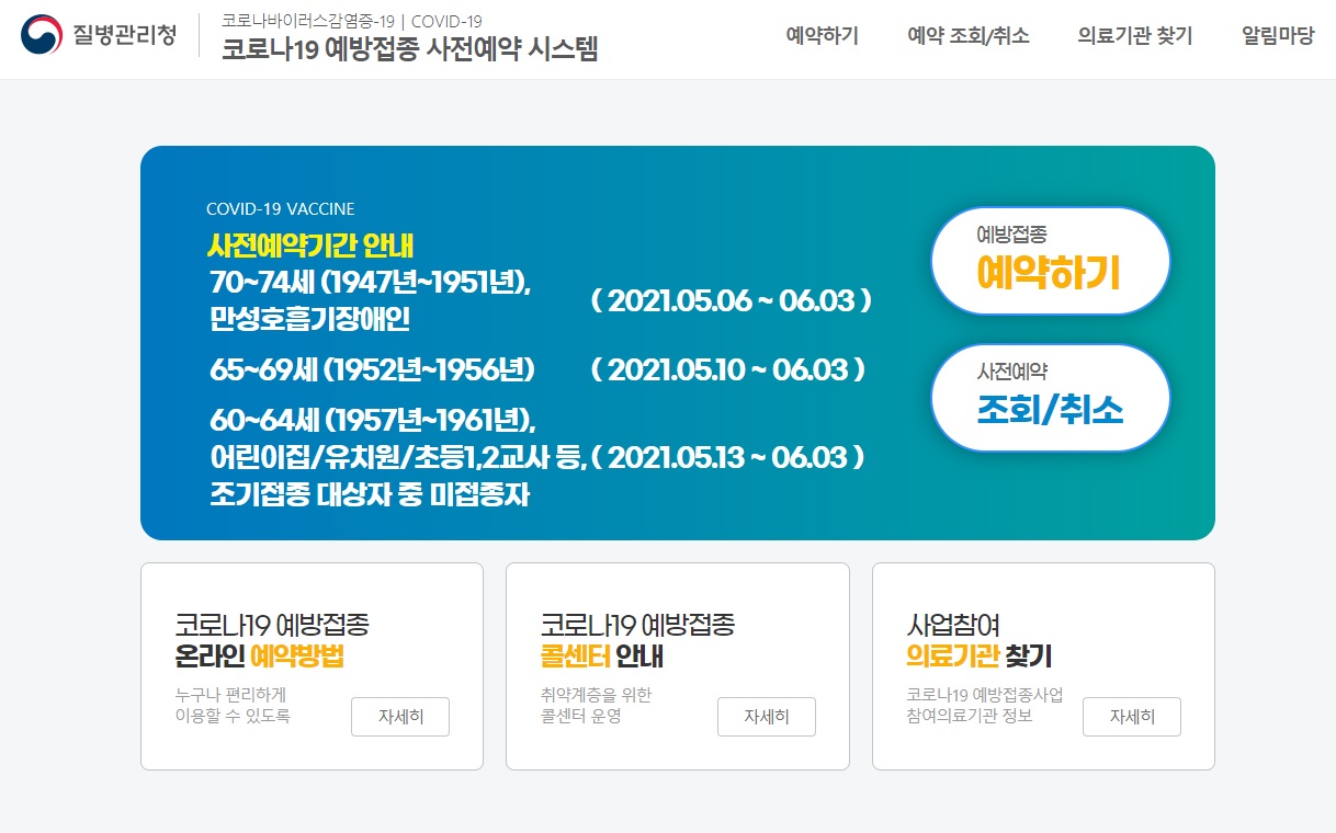지난 6일과 10일부터 각각 사전 예약이 시작된 70-74세, 65-69세에 이어, 13일부터 60-64세(1957~1961년생)에 대한 코로나19 백신 접종 예약이 진행된다고 합니다. 정부의 계획은 상반기 내에 1천300만명에 대한 1차 접종을 마치는 것으로 알려져있습니다.
