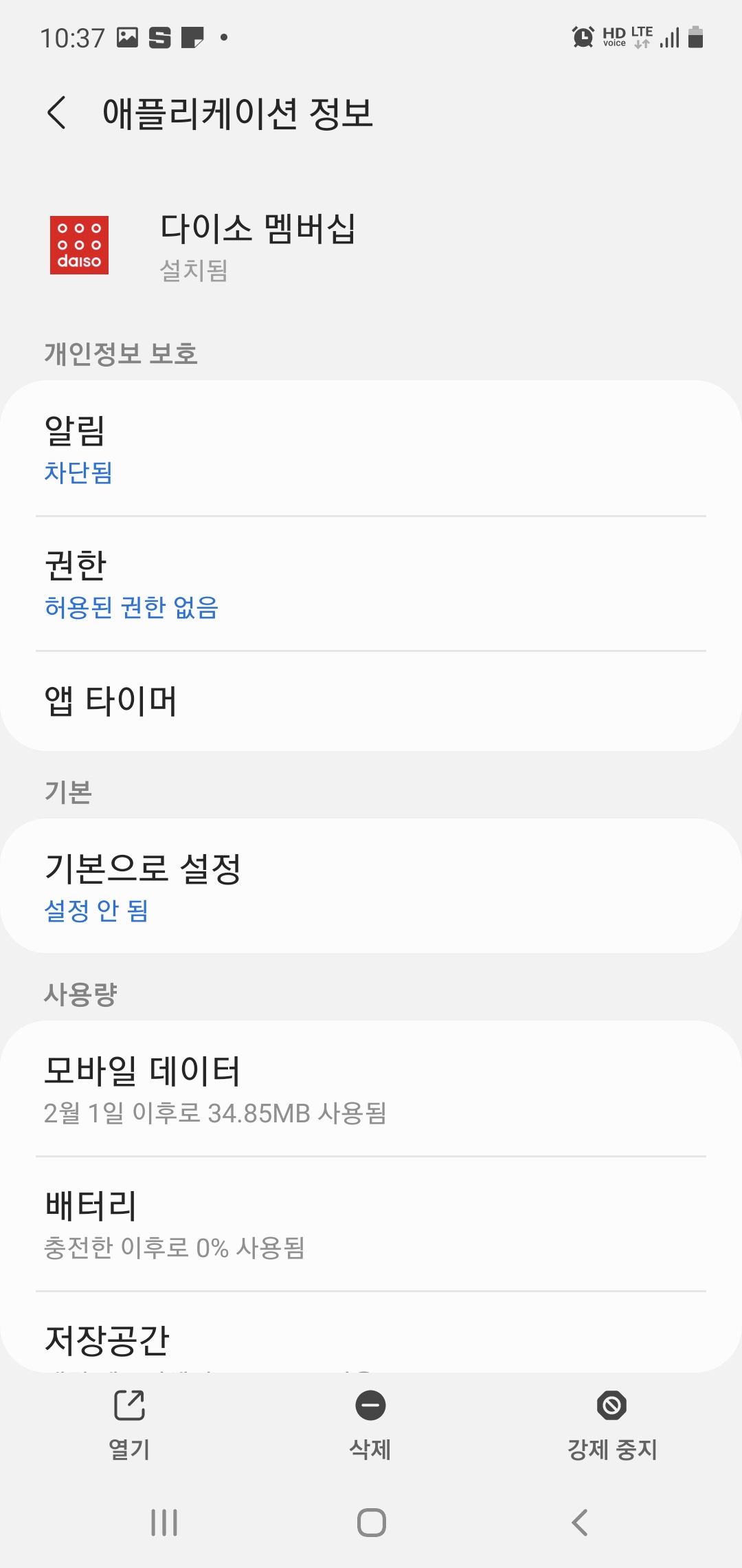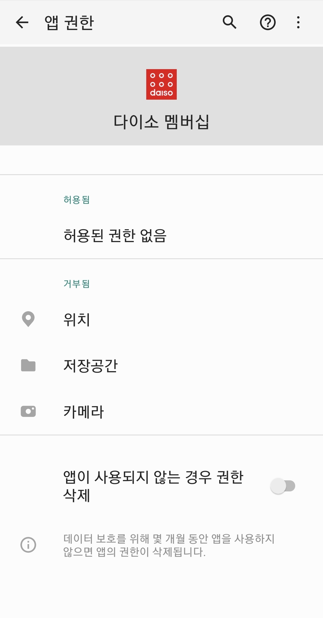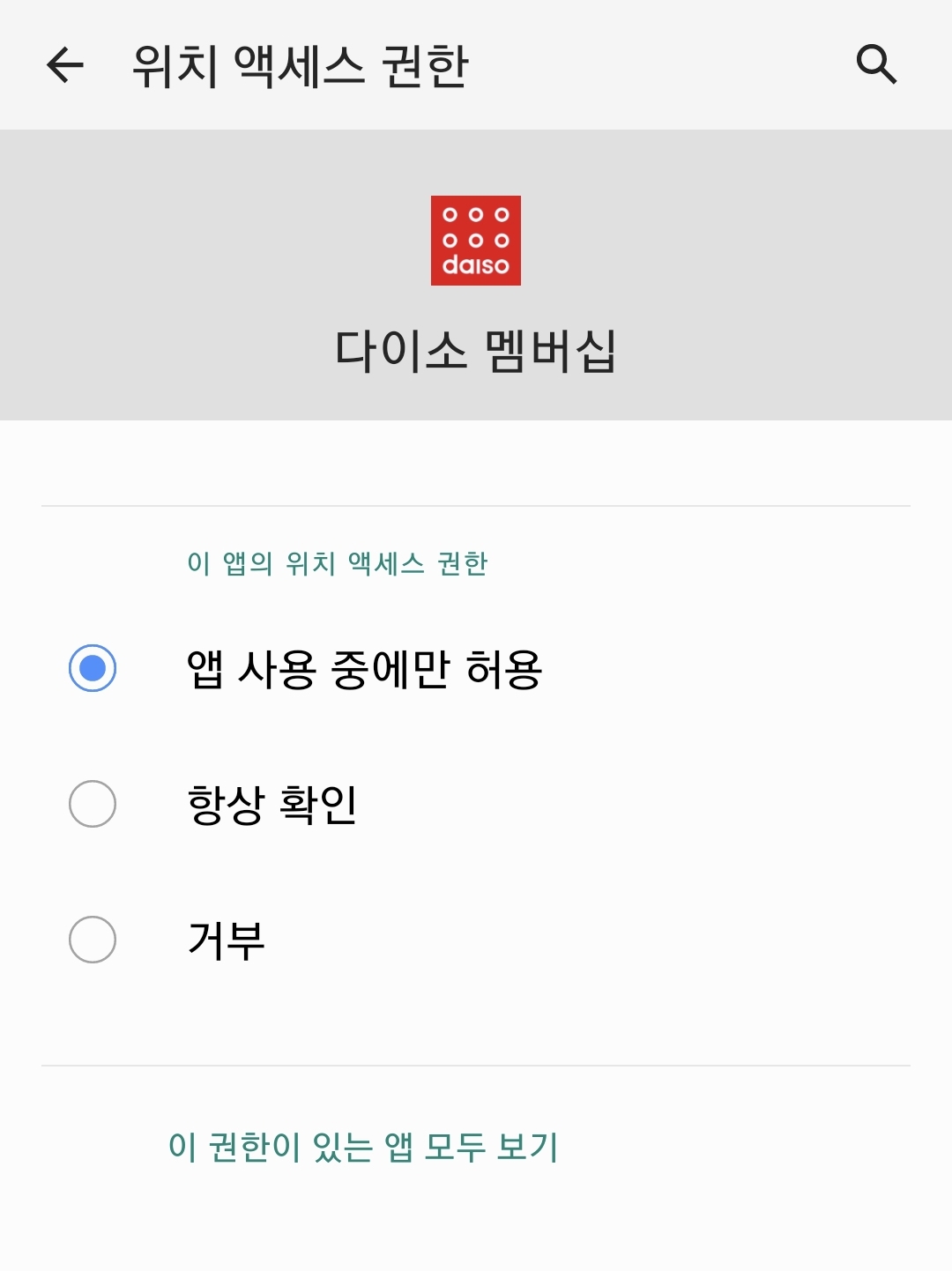 다이소 멤버십 애플리케이션 정보에서[권한] - [위치]를 순서대로 눌러줍니다.