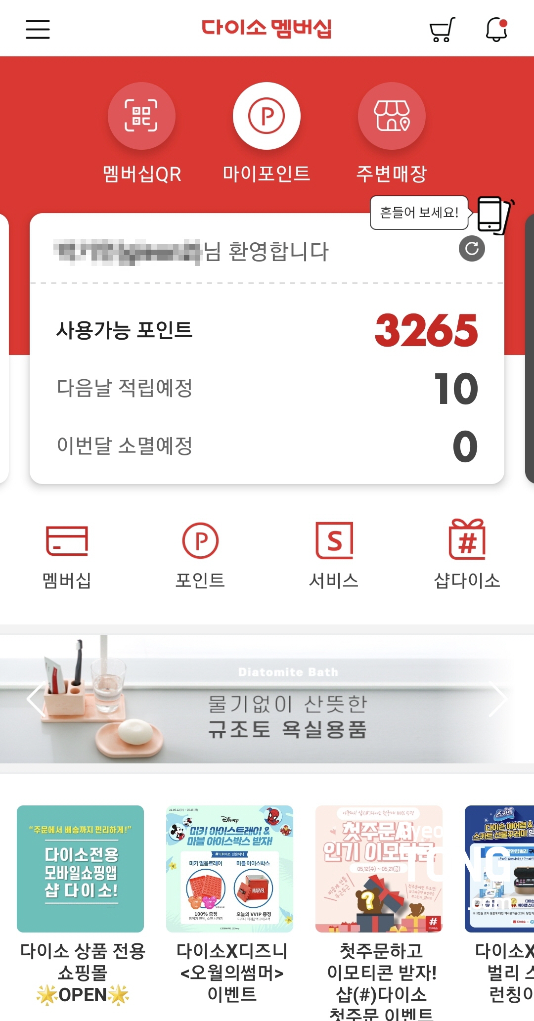 아마 다이소를 많이 이용하시는 분이라면 스마트폰에 다이소 멤버십 앱을 이미 사용하고 계실 것이라고 생각합니다. 다이소 멤버십에 가입되어 있으면 구매하는 금액의 0.1%를 포인트로 적립받을 수 있으니 말이죠.