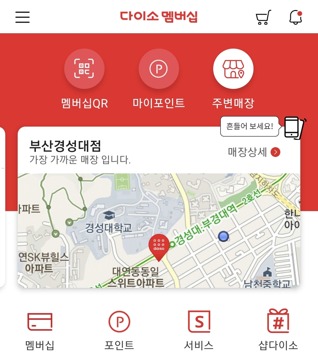 어쨌든 오늘은 포인트에 관한 이야기가 아니라,다이소 멤버십 앱을 통해 주위에 가까이에 있는 매장을 찾고, 영업시간, 전화번호 등의 매장정보를 확인하는 방법에 대해 포스팅해보려고 합니다.