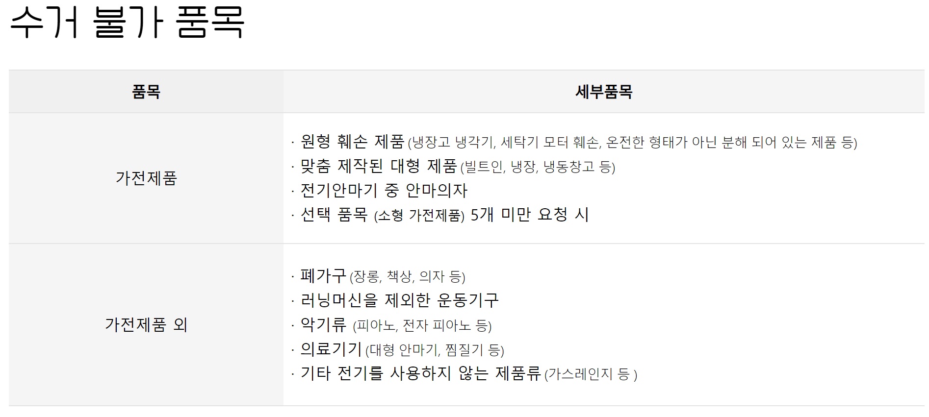 · 인력으로 수거가 불가한 제품은 주민이 수거 가능한 상태가 되도록 조치 하여야 수거가 가능합니다.